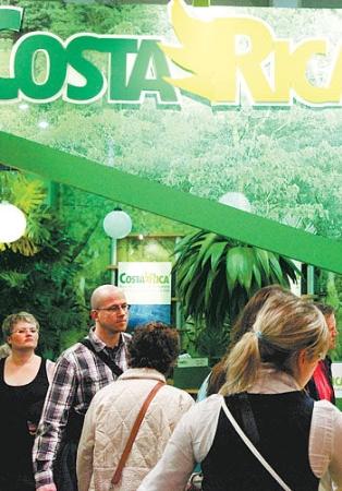 3月11日,人們?cè)诟缢惯_(dá)黎加特色生態(tài)展位前參觀咨詢。當(dāng)日,為期5天的第46屆柏林國際旅游交易會(huì)落幕。根據(jù)德國聯(lián)邦旅游經(jīng)濟(jì)協(xié)會(huì)初步統(tǒng)計(jì),會(huì)上簽署的意向協(xié)議金額超過60億歐元(約78.6億美元)。