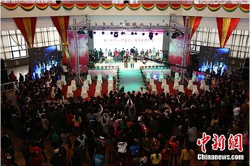 3月30日上午,中國·山西2012國際婚慶產(chǎn)業(yè)博覽會在山西太原展覽館內(nèi)舉辦。本屆婚博會以“經(jīng)典、時尚、魅力、和諧”為主題,展現(xiàn)中國國內(nèi)婚慶行業(yè)發(fā)展流行趨勢。期間還將舉辦妝容才藝大賽、花藝大賽及萬人相親大賽等。涉及婚慶服務、新婚家居、珠寶首飾、美容化妝、婚宴酒店、婚禮購車、新婚購房等諸多門類。(來源:中新網(wǎng))