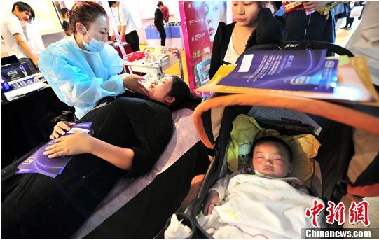 2012美博會(huì):“愛美媽媽”享免費(fèi)美容,孩子?jì)雰很噧?nèi)睡覺