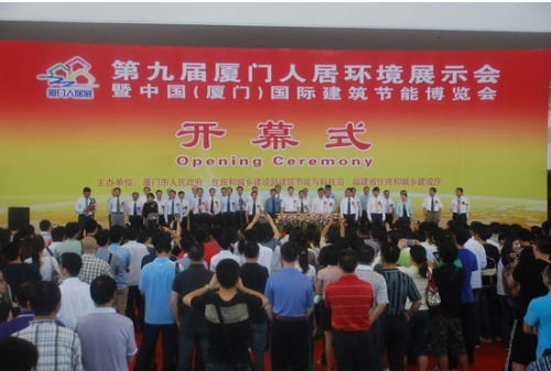 5月18日上午,“第九屆廈門人居環(huán)境展示會暨中國(廈門)國際建筑節(jié)能博覽會”在廈門國際會展中心隆重開幕。此次展會由廈門市人民政府、住房和城鄉(xiāng)建設部建筑節(jié)能與科技司、福建省住房和城鄉(xiāng)建設廳共同主辦。住房和城鄉(xiāng)建設部建筑節(jié)能與科技司司長陳宜明先生、住房和城鄉(xiāng)建設部科技發(fā)展促進中心主任、廈門市人大常委副主任、廈門市人民政府副市長林國耀先生、福建省住房和城鄉(xiāng)建設廳總工程師周武進先生、協(xié)辦單位領導、廈門各級政府領導、廈門新城建設指揮部領導、重點項目參展單位領導、特邀協(xié)辦單位領導、企業(yè)領導等共同見證了儀式的啟動。