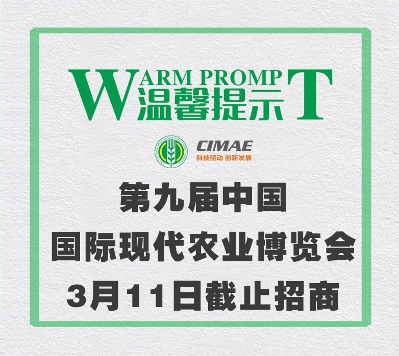 溫馨提示|中國國際農(nóng)業(yè)博覽會(huì)將于本周截止招展