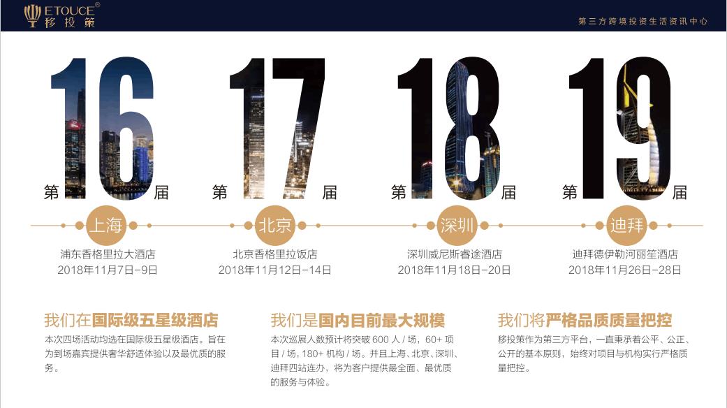2018年11月,移投策|移投行業(yè)精英交流盛會(huì)巡回展,相約北京、上海、深圳、迪拜四地,提前預(yù)訂展位更享鉅惠。