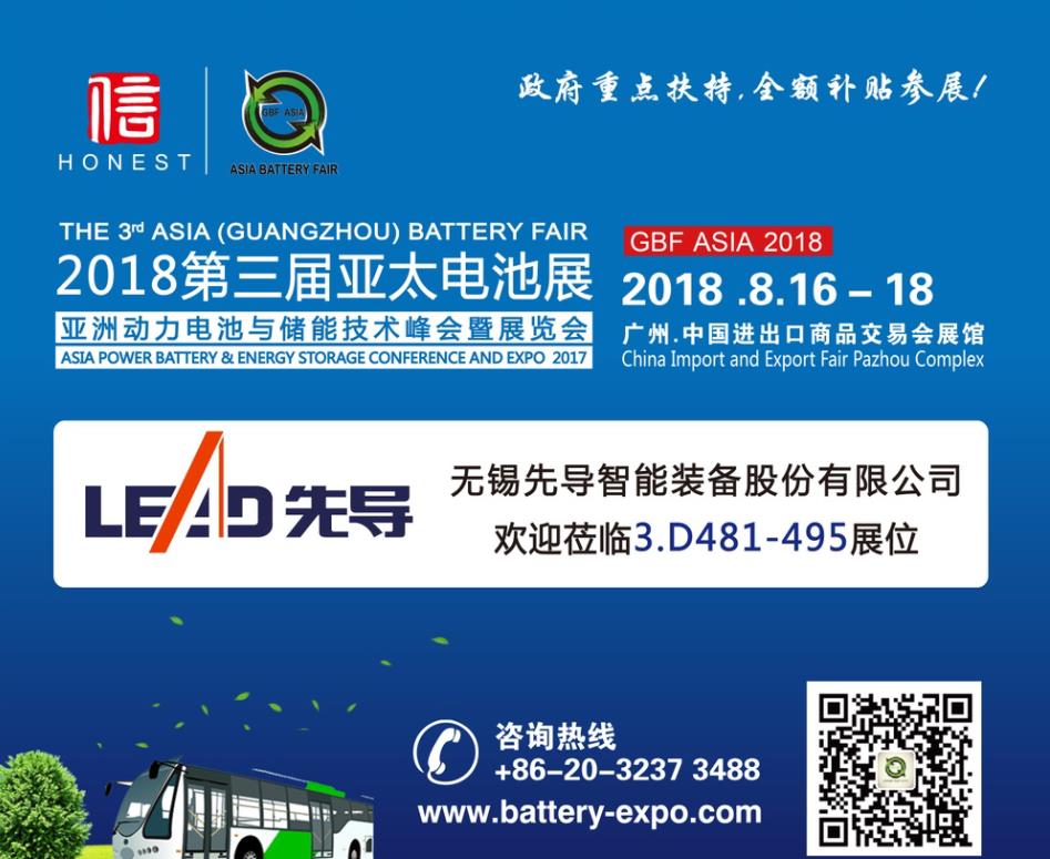 無(wú)錫先導(dǎo)智能裝備股份有限公司 將隆重出席8月16-18日在廣州琶洲.廣交會(huì)展館A區(qū)舉辦的GBF.ASIA 2018第三屆亞太電池展。