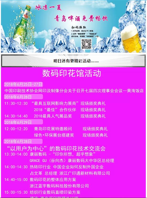 數(shù)碼印花行業(yè)的“大咖”齊聚青島印花展,我們共同暢飲青島啤酒!