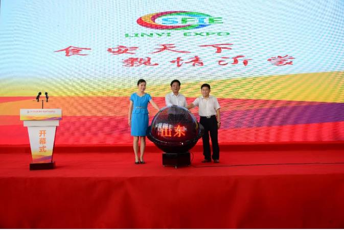 山東省商務廳副廳長 王洪平先生、山東省農(nóng)業(yè)廳二級巡視員 姜衛(wèi)良先生、臨沂市委副書記張宏偉女士共同點亮啟動球。