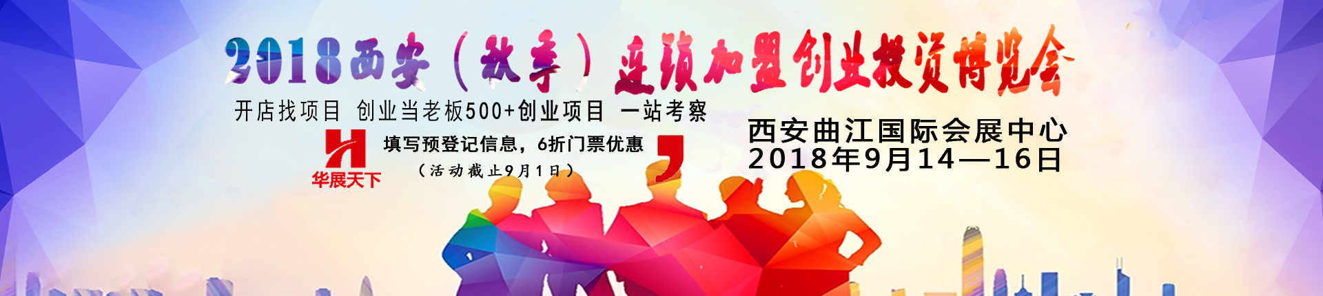 2018年9月14日-16日在西安曲江國際會展中心舉辦“2018西安(秋季)連鎖加盟創(chuàng)業(yè)投資博覽會”,展會將以繼續(xù)促進創(chuàng)業(yè)帶動就業(yè)、創(chuàng)業(yè)致富為主要目的,為我們的投資者帶來更多更好的機會。