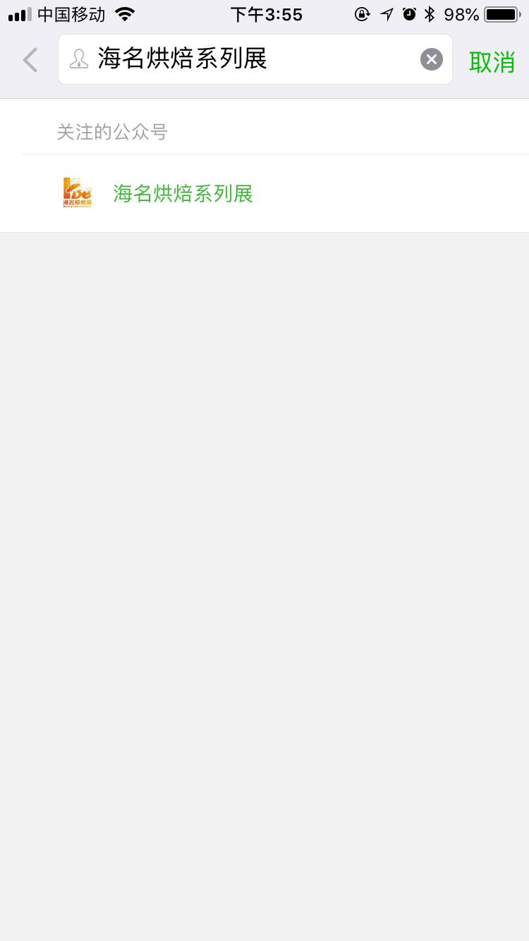 1、微信搜索公眾號(hào)【海名烘焙系列展】并關(guān)注