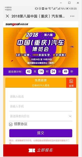 本屆重慶車博會不僅有幾十個汽車市場主流品牌參展,還有組委會提供的超豪華購車抽獎大禮包,更有多個活動現(xiàn)場舉行,精彩程度本年度僅此一次,不容錯過。下面小編為你奉上一篇免費搶票的詳細操作指南,話不多說,我只能幫你到這兒了。