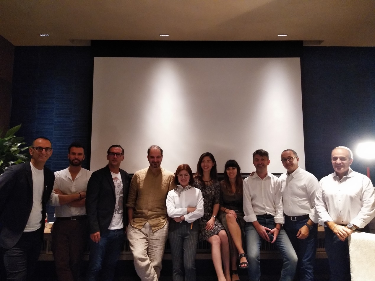 ▲Prato Trade 意大利面料供應(yīng)商代表,Prato Trade主席Maurizio Sarti(圖中右邊第二位男士)