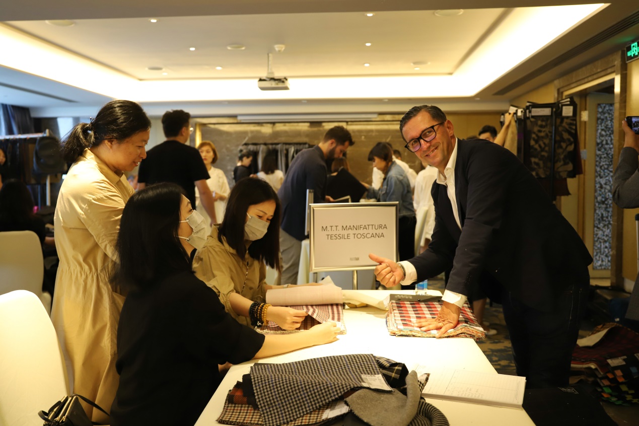▲Prato Trade 意大利面料供應(yīng)商代表和高端買家合影