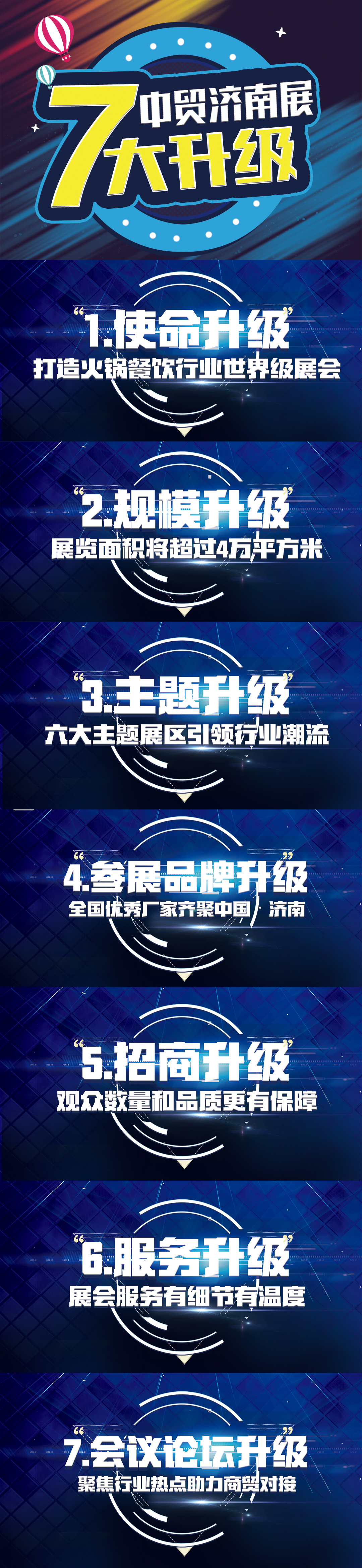 2018第12屆全國食品博覽會暨濟南糖酒會的成功舉辦,離不開行業(yè)內(nèi)知名品牌對展會的支持。與此同時政府機構(gòu)以及專業(yè)協(xié)會的傾力相助,帶來高質(zhì)量的專業(yè)買家團隊觀展。這兩股合力,將在2019展會上再次凝聚。過往輝煌皆為序章,2019第13屆全國食品博覽會暨濟南糖酒會將繼續(xù)砥礪前行!經(jīng)過十幾載的運作和探索,CNFE規(guī)模不斷擴大、專業(yè)化程度不斷提升。2019CNFE將結(jié)合12年的行業(yè)經(jīng)驗積累,伴隨上屆展會的行業(yè)認可度,從“新”出發(fā),全面升級:使命升級、規(guī)模升級、主題升級、參展品牌升級、招商升級、服務升級、會議論壇升級!七大升級,將給您帶來耳目一新的參展感受以及最貼心的觀展體驗。