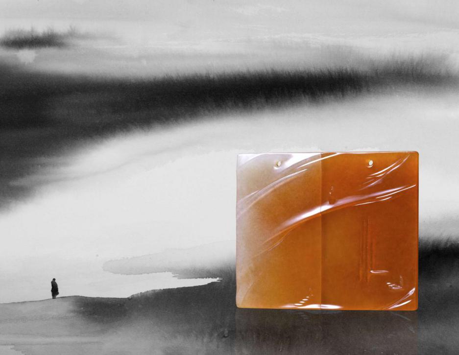 同一塊紅翡料子,分割成兩塊玉牌,顏色不斷加深,雕刻線條連續(xù)流動(dòng)。里面蘊(yùn)含了造物,誕生,見(jiàn)證三種境界,啟示著路漫漫其修遠(yuǎn)兮,吾將上下而求索的人生哲學(xué)。