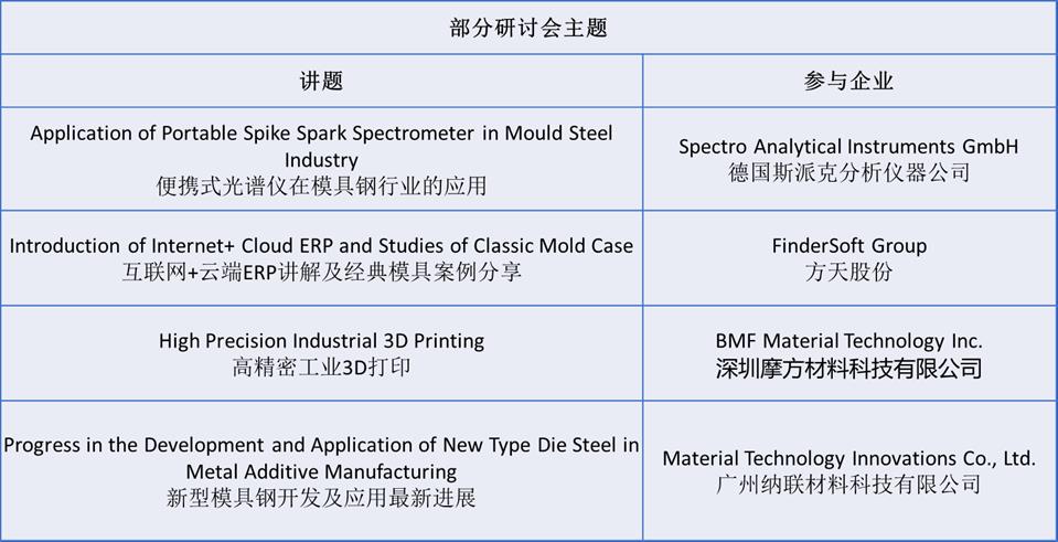 Asiamold一直致力于為華南地區(qū)制造業(yè)提供與3D打印、金屬加工及模具相關(guān)的先進技術(shù)、產(chǎn)品及解決方案,配合內(nèi)容全面的研討會及峰會以豐富參展商和觀眾的與會體驗。2019年的廣州國際模具展覽會研討會將于展會首天舉辦,為本地及海外行業(yè)專家提供機會分享最新科研成果。