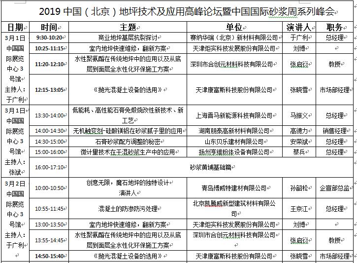 為加快地坪行業(yè)新技術(shù)、新材料、新工藝的推廣和應(yīng)用,增進地坪與砂漿行業(yè)的跨界合作與交流,展會期間組委會將聯(lián)合中國室內(nèi)裝飾協(xié)會施工委員會、中國砂漿網(wǎng)等機構(gòu)共同舉辦2019中國(北京)地坪技術(shù)及應(yīng)用高峰論壇暨2019中國(北京)砂漿與地坪合作交流大會。具體議程如下: