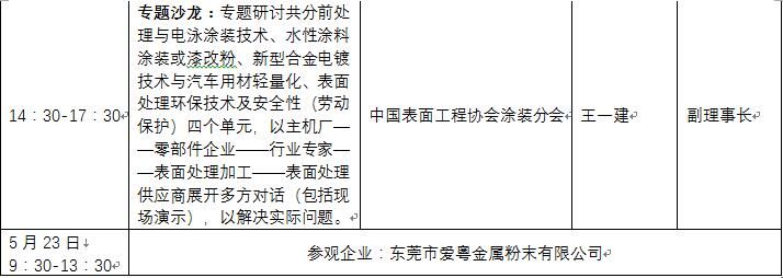 會(huì)議與展覽會(huì)深度相結(jié)合歷來(lái)是廣州國(guó)際表面處理展覽會(huì)的一大特色,本屆展會(huì)將有70場(chǎng)次國(guó)際性論壇、行業(yè)會(huì)議、技術(shù)研討會(huì)在同期舉辦,最新最前沿技術(shù)助力用戶企業(yè)最大限度地創(chuàng)造產(chǎn)品價(jià)值。部分會(huì)議及議程如下: