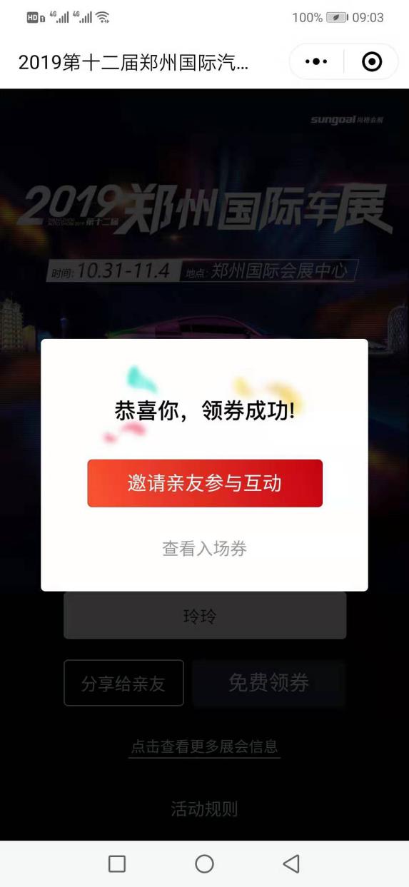 █ 入場(chǎng)前可以進(jìn)入官方微信【鄭州國(guó)際車展】點(diǎn)擊菜單【票證查詢】進(jìn)入查詢頁(yè)面打開電子票圖片。