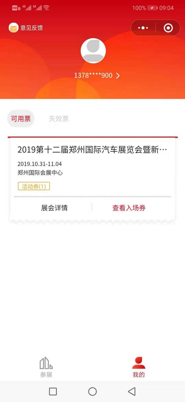 2、輸入手機(jī)號(hào)和驗(yàn)證碼點(diǎn)擊登錄,即可領(lǐng)取到免費(fèi)的鄭州國(guó)際車展門票;點(diǎn)擊“查看入場(chǎng)券”,即為車展電子門票,展期掃碼入場(chǎng)即可。