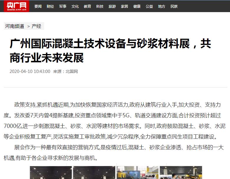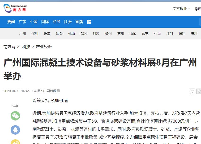 近百家知名媒體紛紛報(bào)道2020廣州國際混凝土與砂漿展