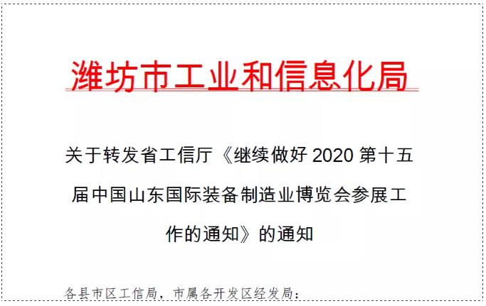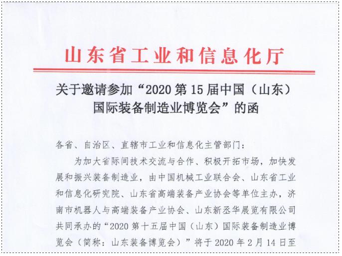 山東省工信廳邀請各省、自治區(qū)、直轄市裝備制造業(yè)企業(yè)參展、參觀: